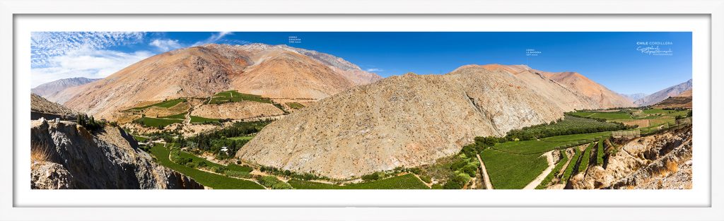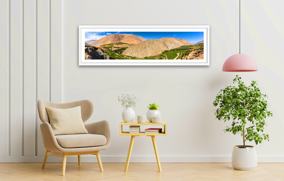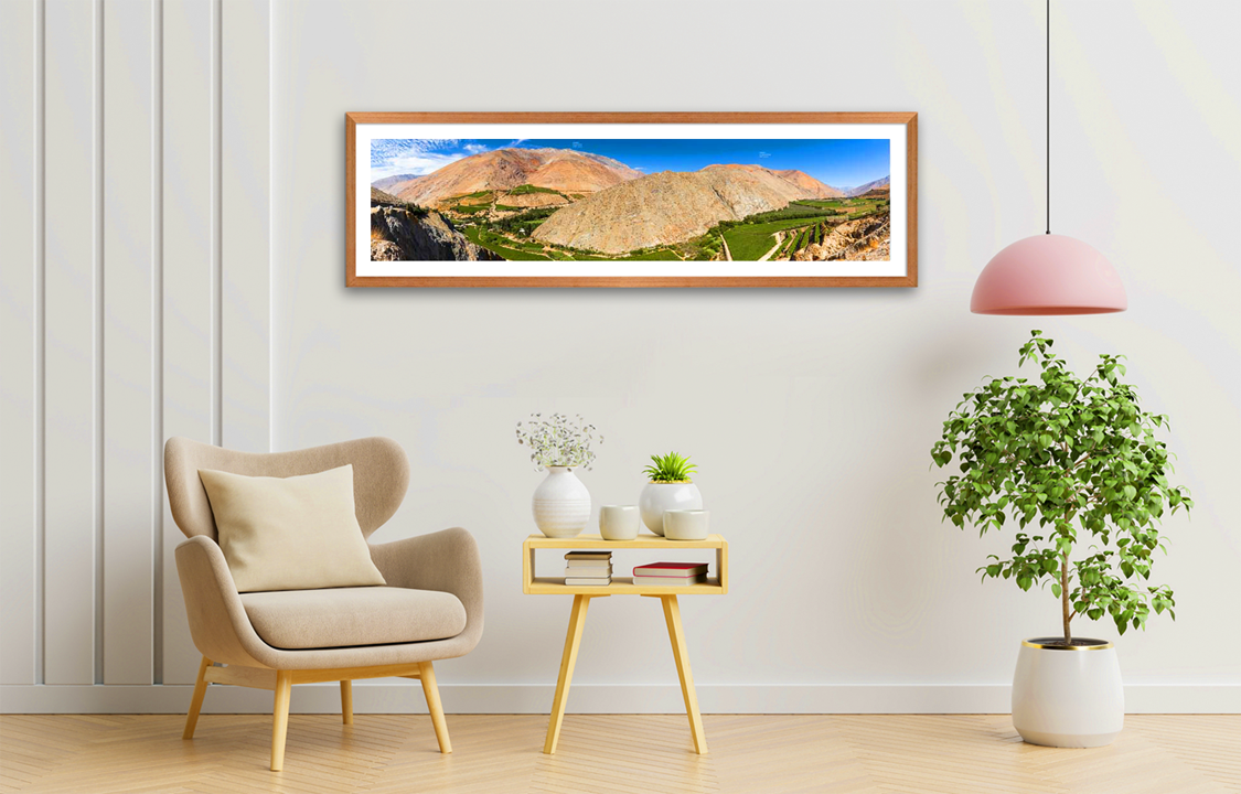 Cuadro Fotografía panorámica en alta calidad de impresión del Místico Valle del Elqui/Sector Pisco Elqui junto a sus cerros ubicado en la Región de Coquimbo para tu hogar/Oficina.