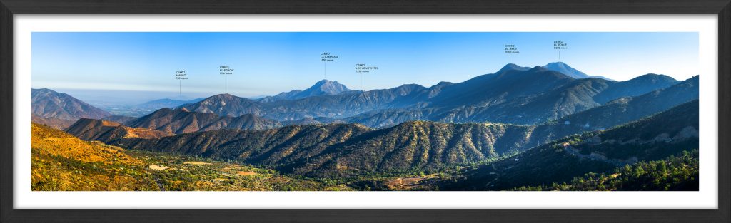 Cuadro  fotografía  panorámica en alta calidad de impresión del  Cordón Montañoso Cerro la Campana, Cerro el Roble y Valle Central  desde la V Región de Valparaíso    para tu  hogar/Oficina.